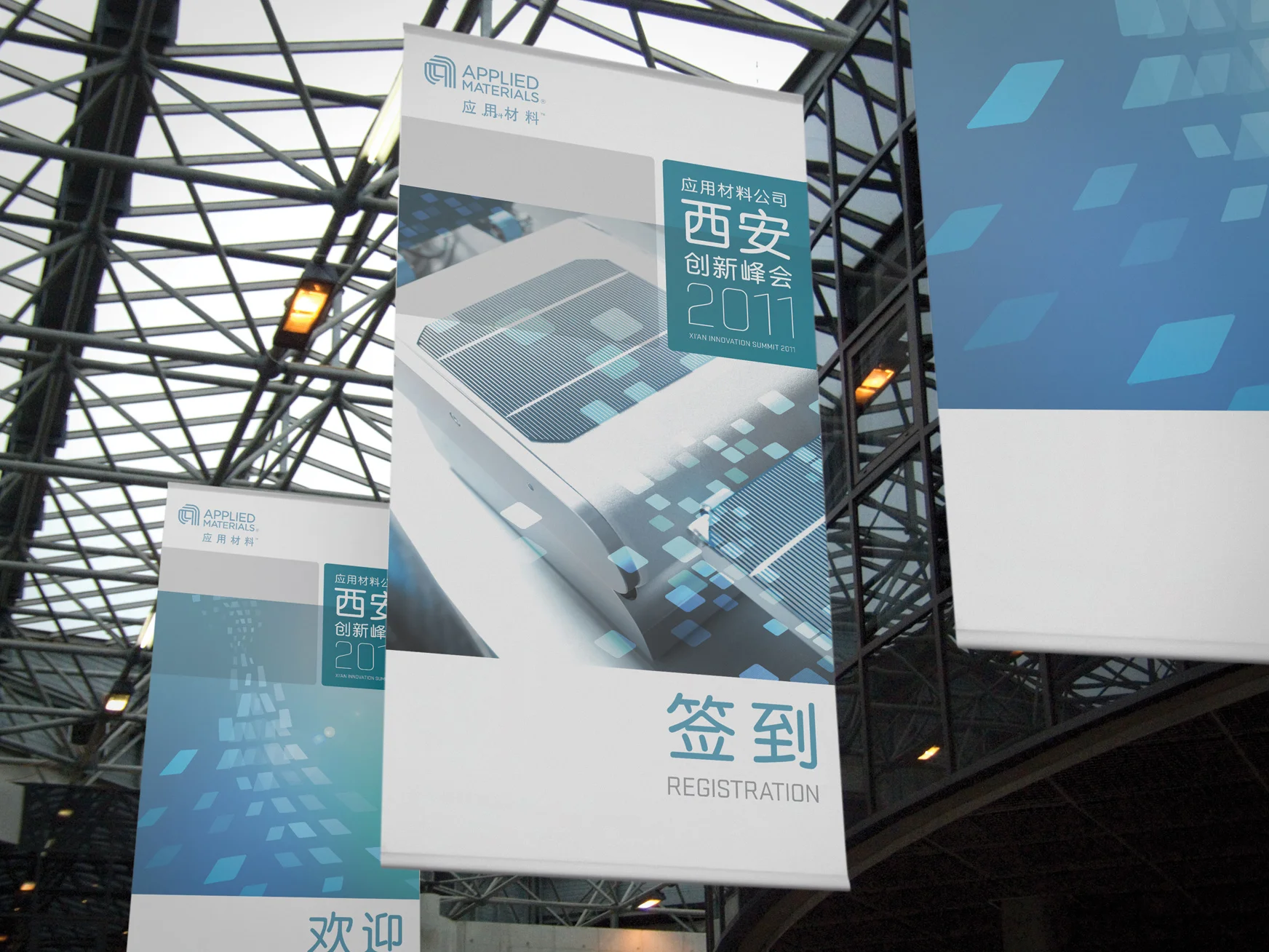 The challenge was to build on the visual style of similar events the company hosted elsewhere in the world, but make it unique to Xi’an. We created logos for the event in both Chinese and English, as well as wayfinding signage to direct attendees through the R&D facility. With smart signage, a complicated industrial building was transformed into a fascinating display of Applied Materials technology.